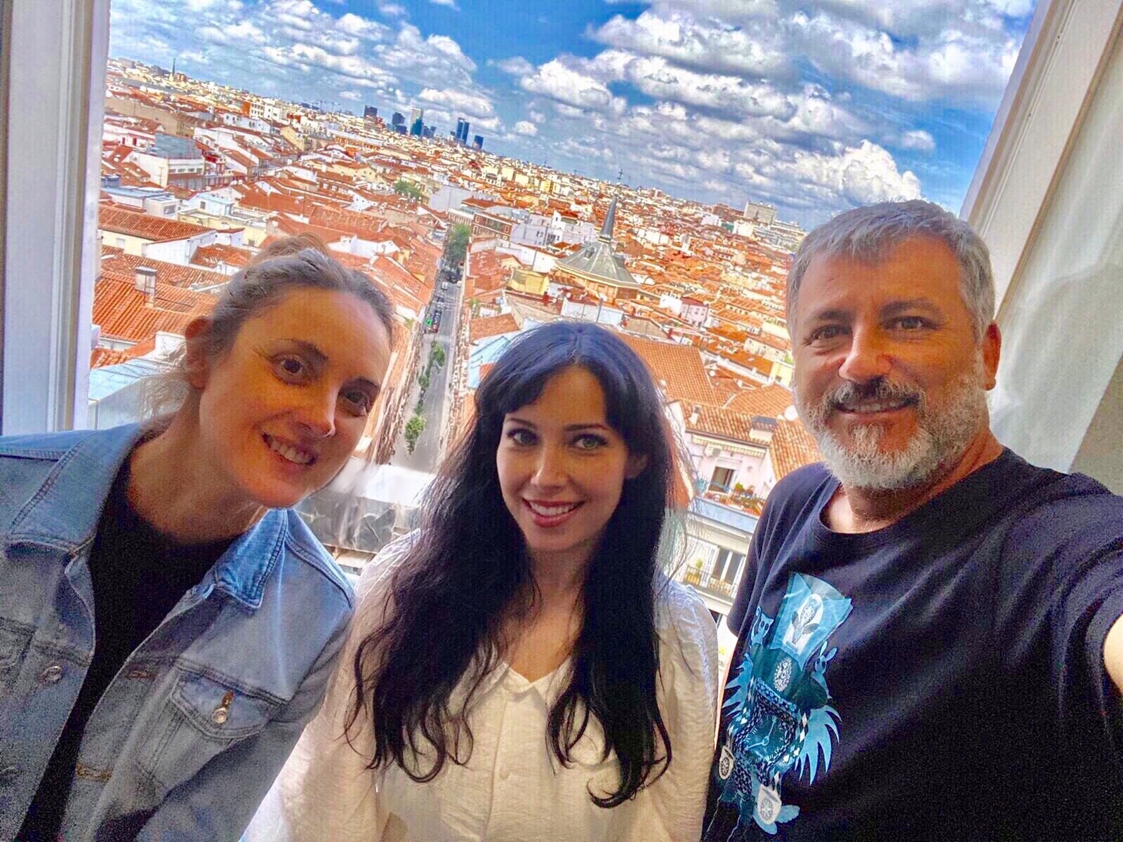 La actriz Nazaret Jiménez Aragón caracterizada como Loli con Imanol Arias y Pablo Rivero.